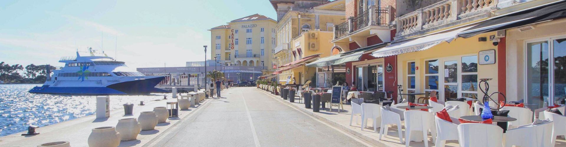 Wenn Sie Ihren Spaziergang auf der Poreč Strandpromenade beginnen, lädt Sie die Mischung aus historischem Charme und modernen Bars und Restaurants auf die Promenade von Poreč ein.